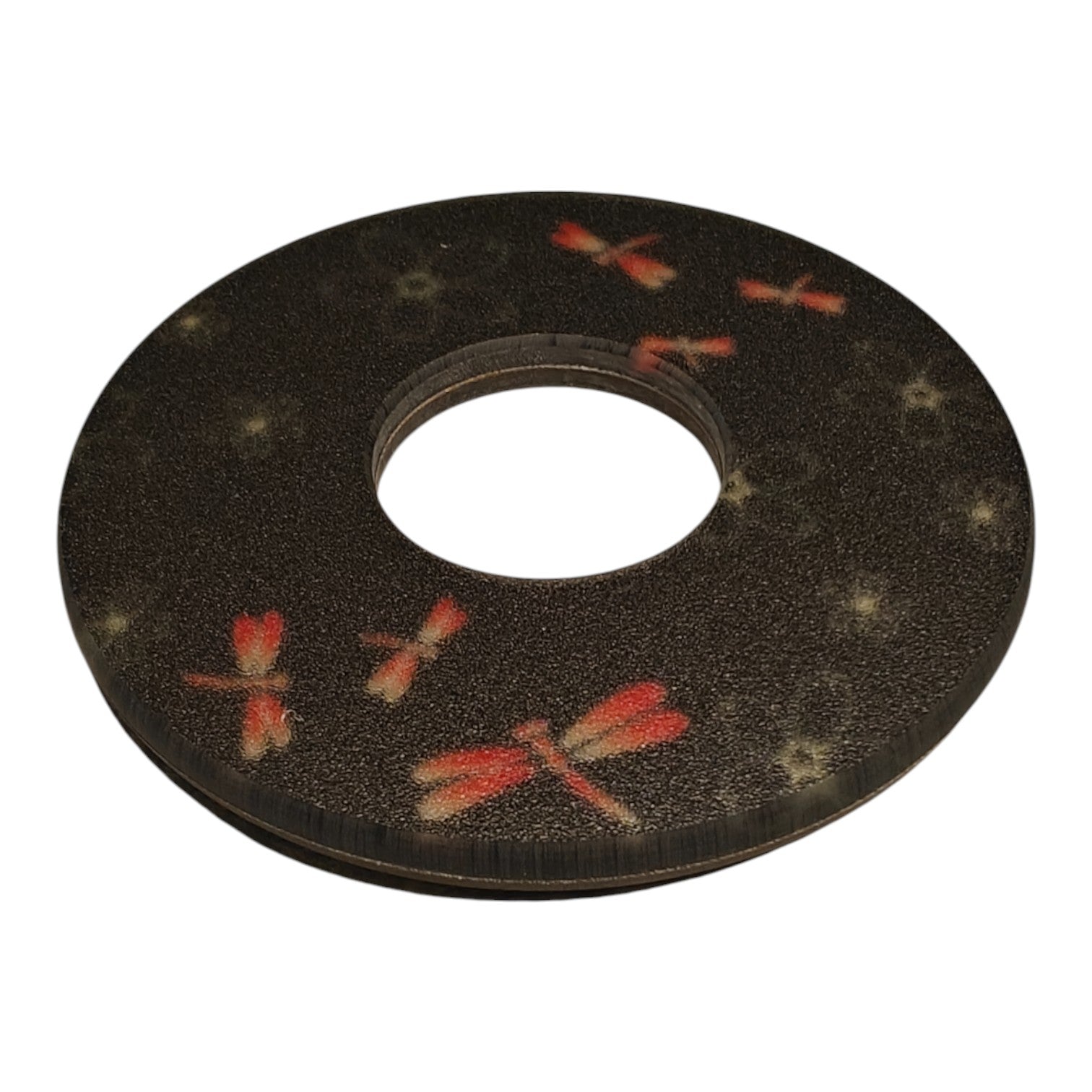 A highly durable kendo tsuba designed to resist cracking, peeling, and deformation. It features elegant sakura (cherry blossom) and dragonfly motifs—both traditionally favored by samurai for their symbolic meaning in budō culture.