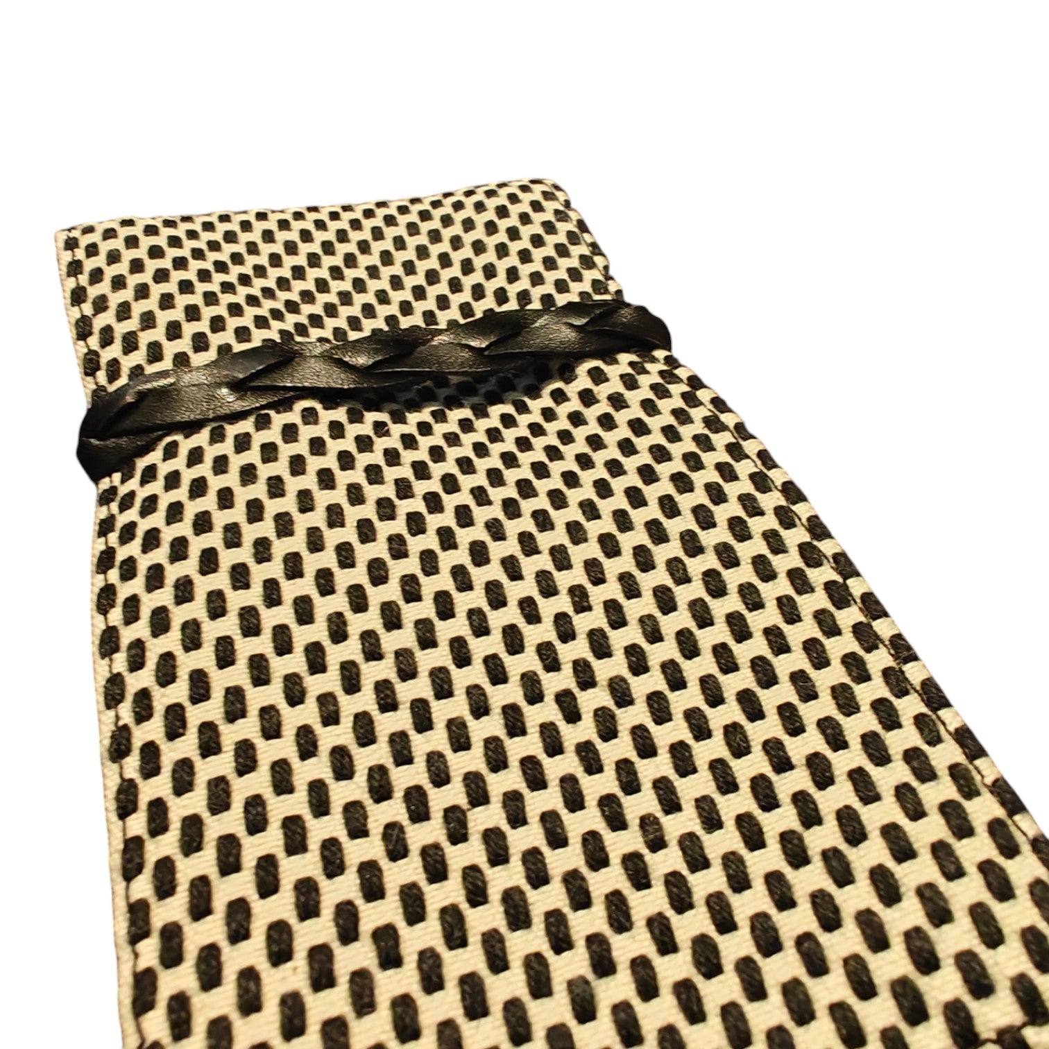 The Bushu Master Shinpan Flag Bag is crafted using renowned Japanese Bushu fabric, combining traditional aesthetics with practical elegance. Made from beautiful indigo Orizashi—a keikogi-style woven cotton—it offers both durability and a refined texture. A luxurious leather strap and metal button closure complete the design, ensuring ease of use with a sophisticated finish.