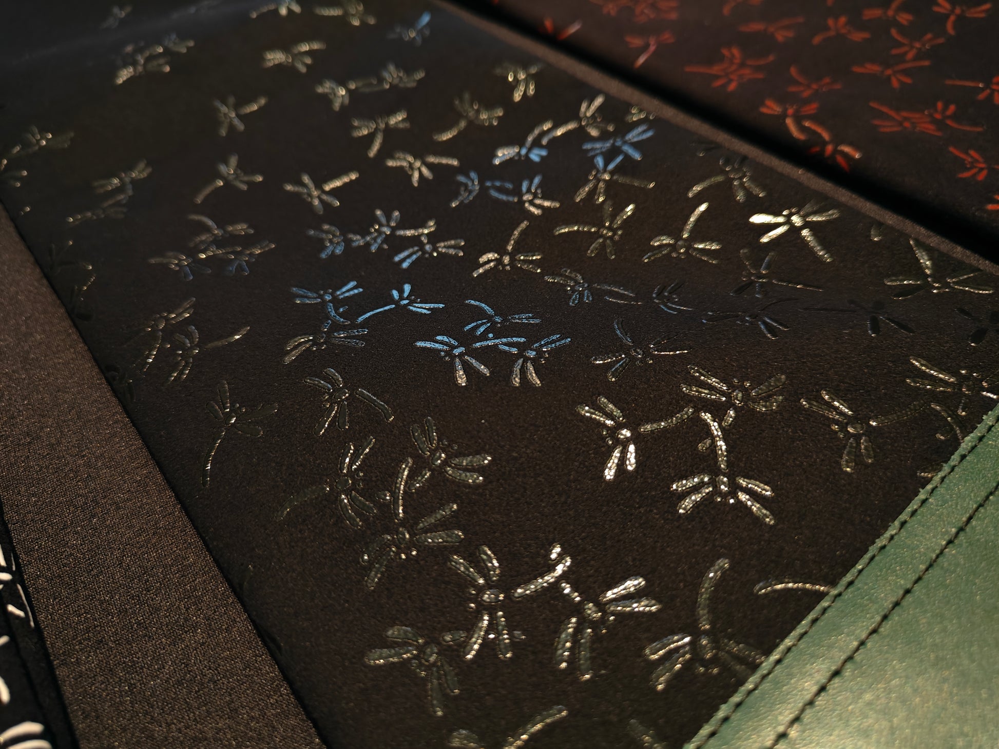 Inden shinai bag with dragonfly design. This shinai bag is for for high school to adult size shinai. It fits 3 shinais.