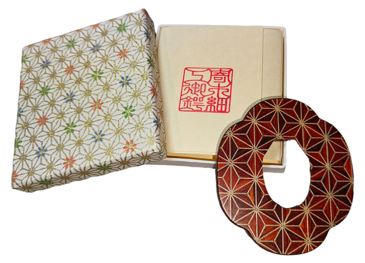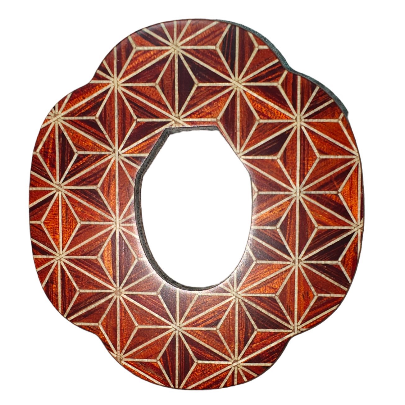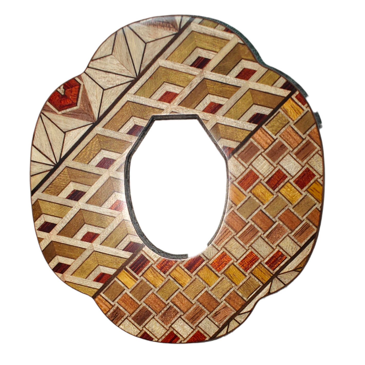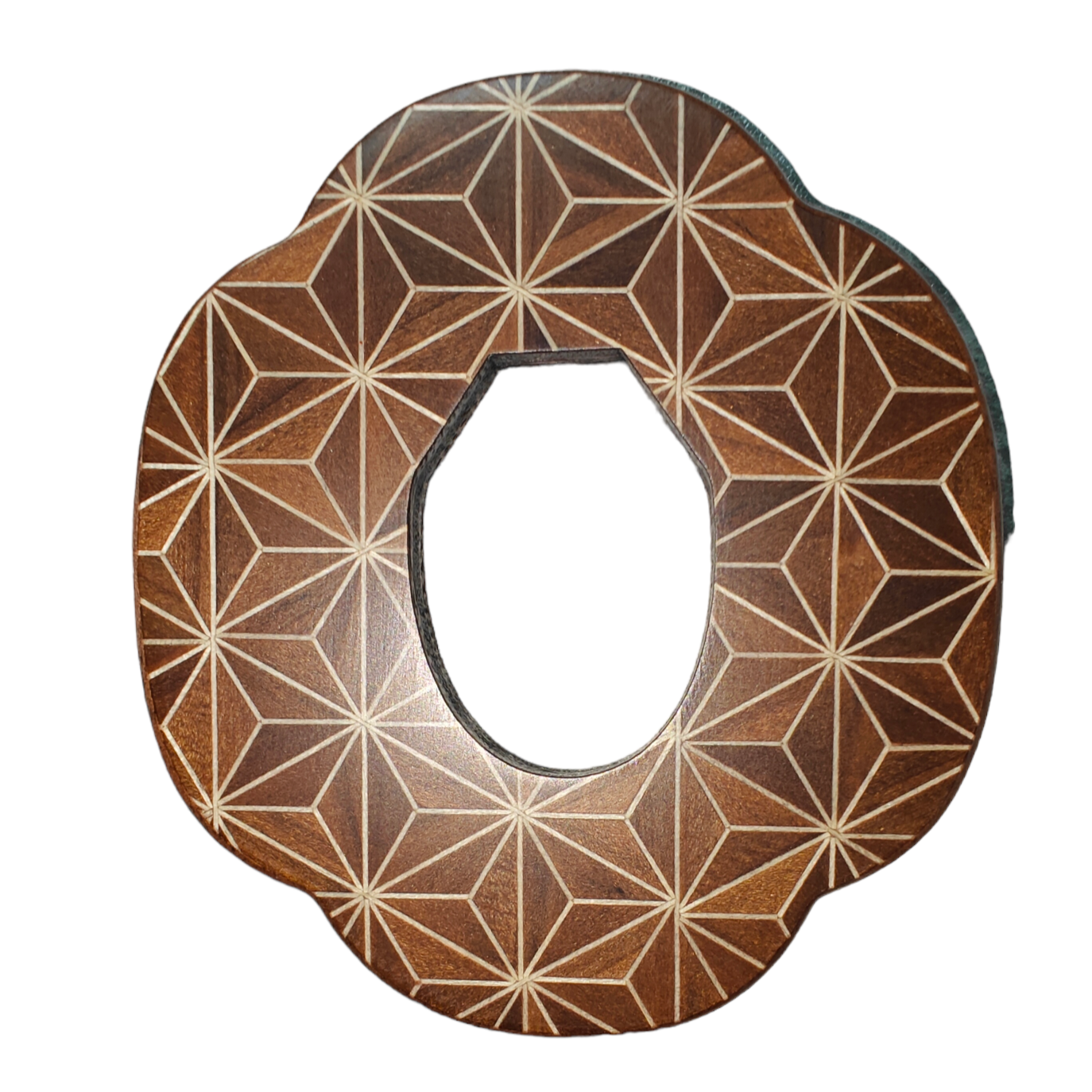 This bokuto tsuba is crafted using the Yosegi Zaiku technique — a centuries-old marquetry art that combines different natural woods into intricate geometric patterns. Each piece is handmade by skilled artisans, ensuring that no two tsuba are ever the same.