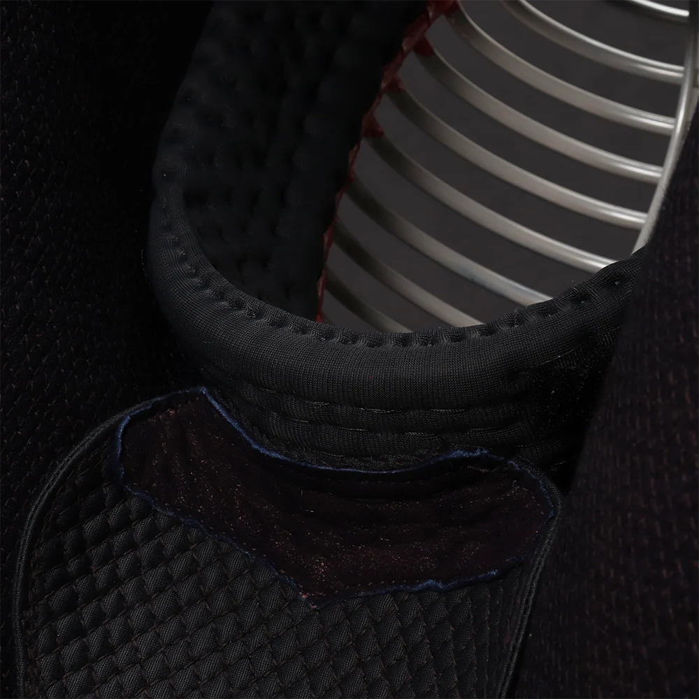 The Men features a tightly constructed 4mm cross-stitched futon that provides reliable protection while maintaining excellent shape retention. The 4-dan kazari ago, finished with orizashi fabric, adds a traditional yet dignified aesthetic.