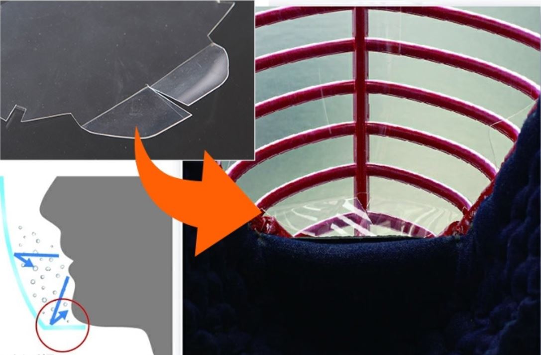 ISGフェイスシールドの改良版で、口のあたりのみをカバーするマウスシールドです。