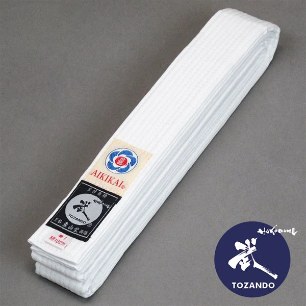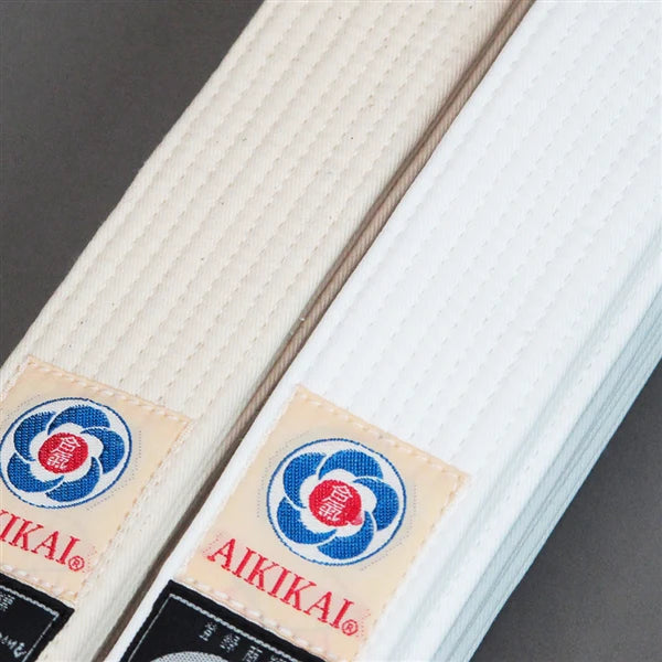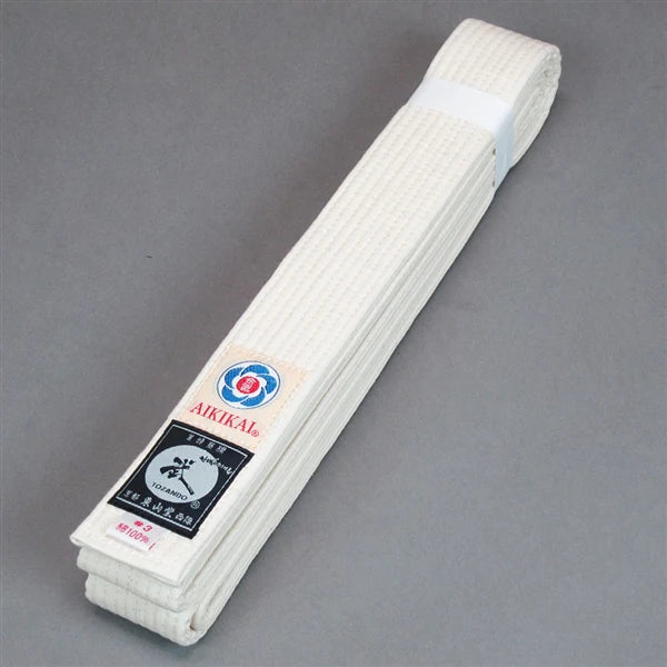 This is a standard white cotton obi for Aikido with 9 lines of stitching.