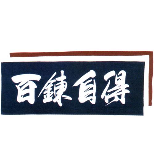 This tenugui has the wording "Hyakuren Jitoku" (百錬自得) printed.